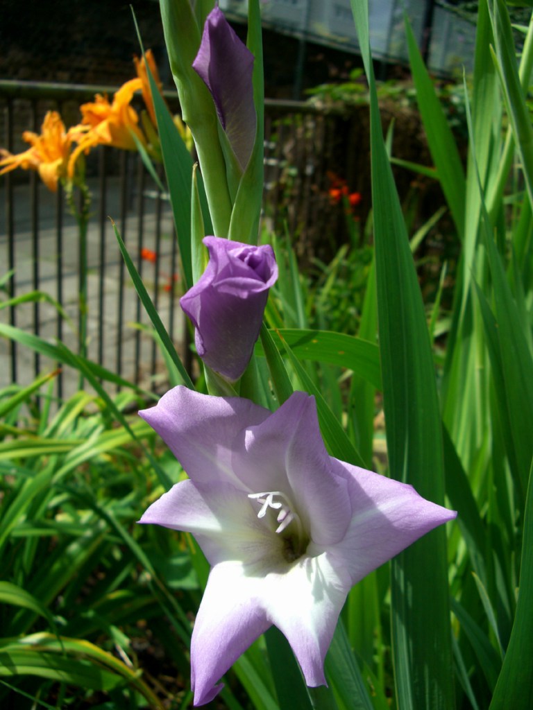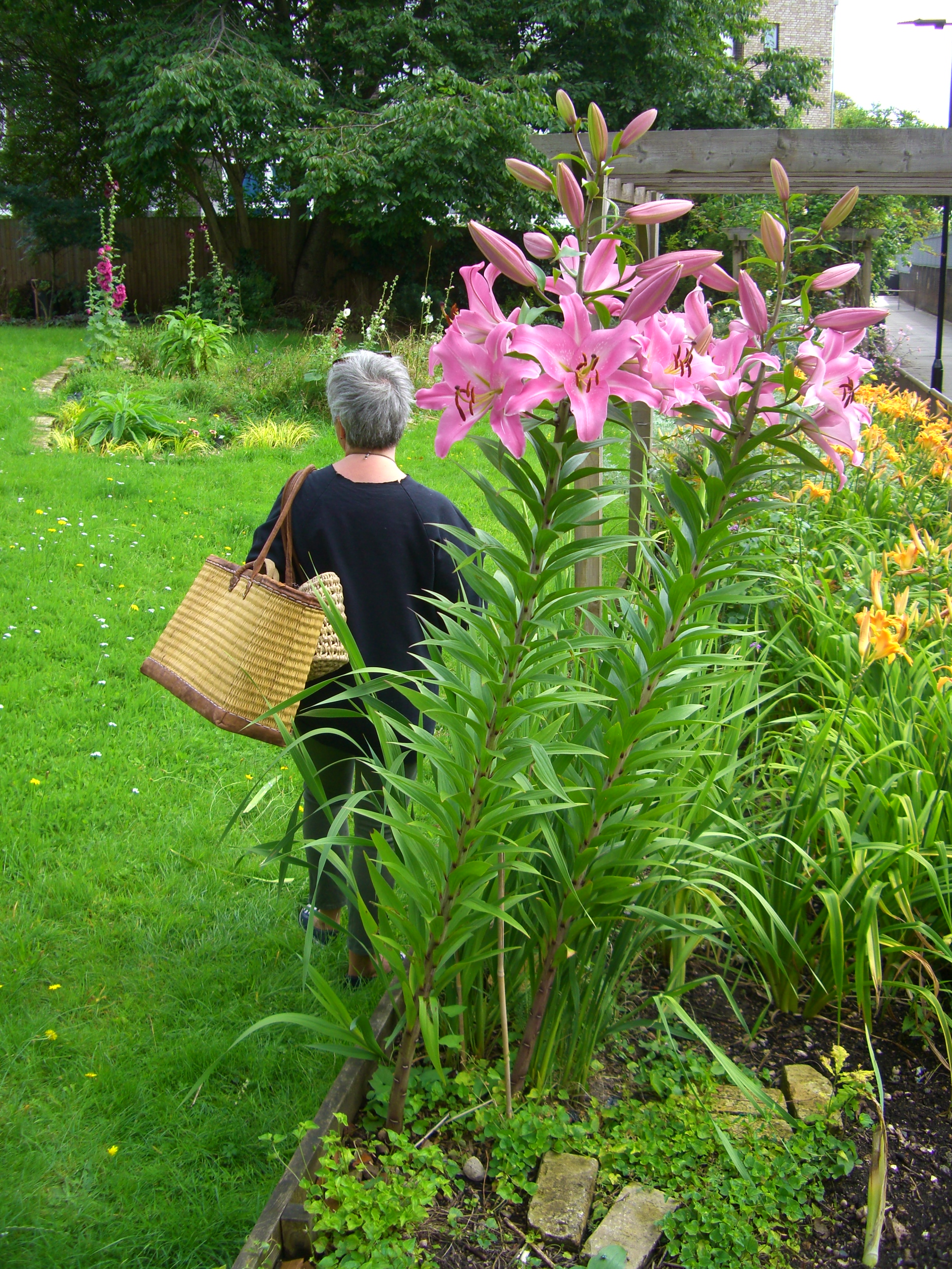 The Asiatic lily stand absolutely on their own and need no staking at all (unlike the slightly more feeble gladioli, which do tend to flop over under the weight of their blooms, as do also the hollyhock).