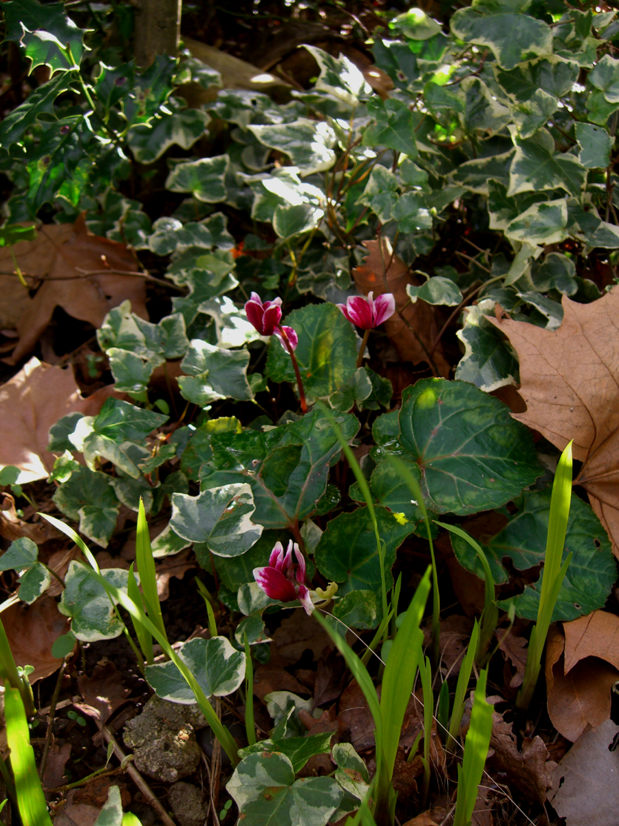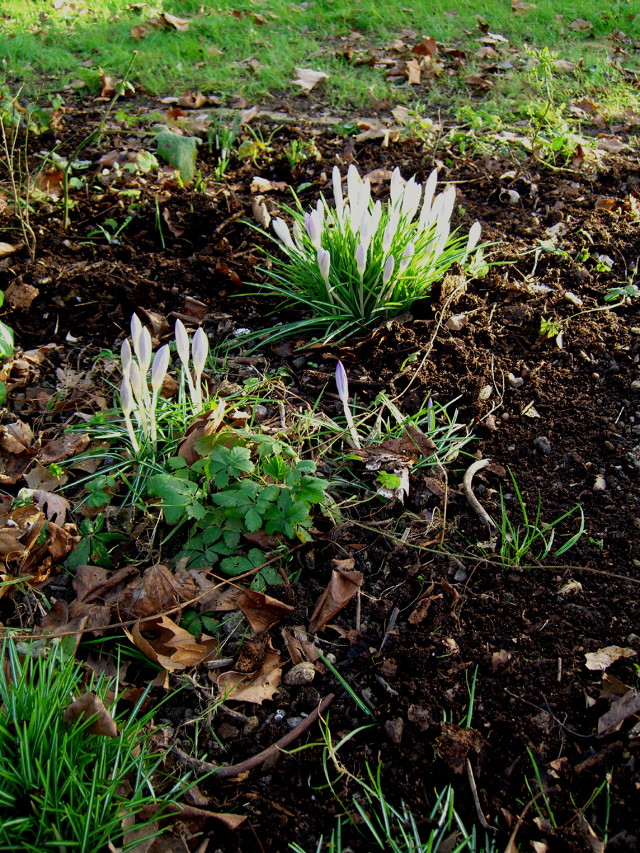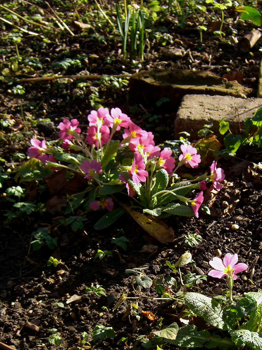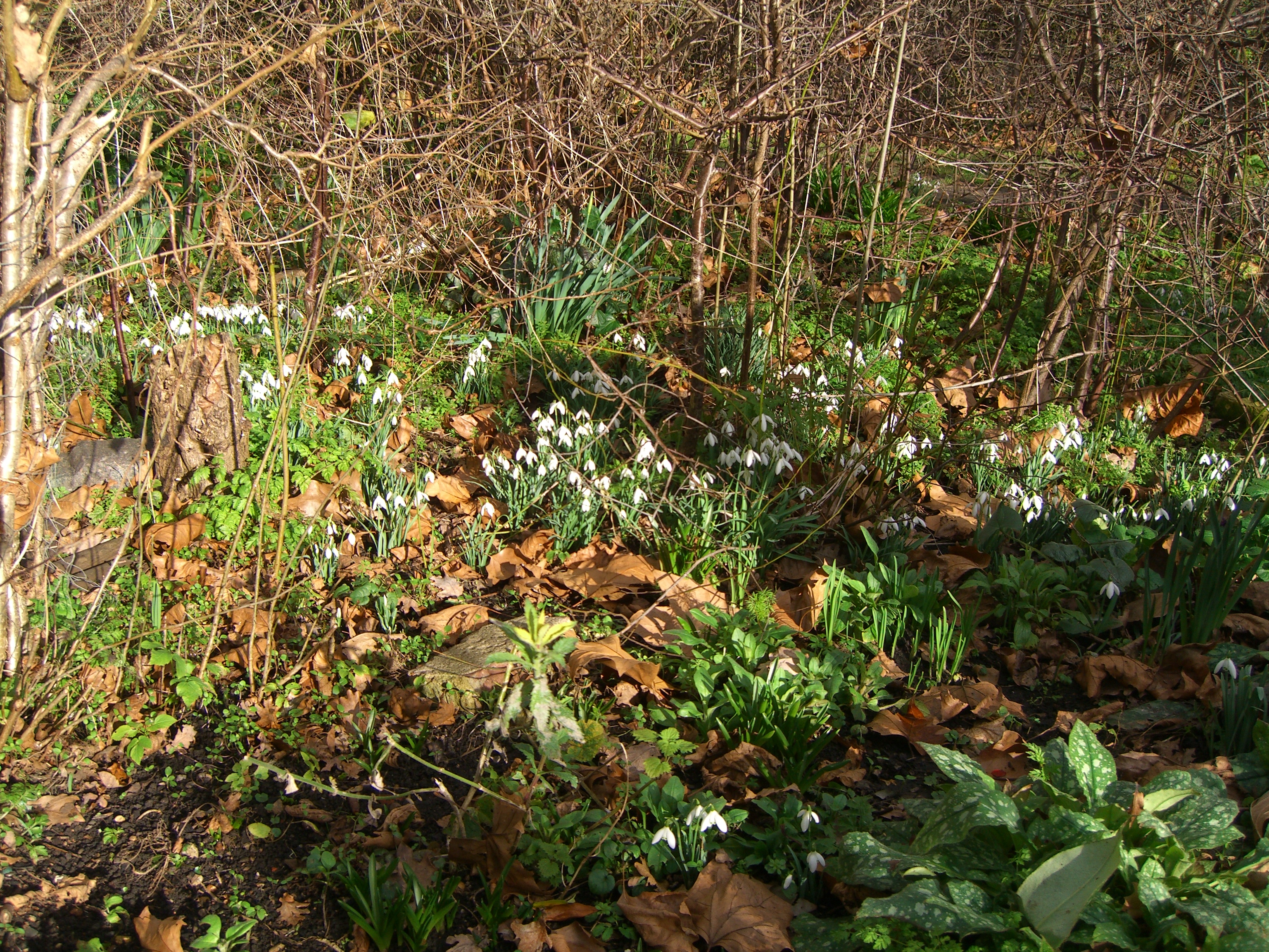 Feverfew flowering early February.Wild Wood Violet. Can you see the tiny delicate blossoms tucked away? (6 Feb 2022)Daffodil with wood violet at its feet.Crocus.Vinca in flower. 6 Feb 2022Acanthus is a green giant. Growing at the back of the holly bush near Mary Barnes flower bed.Cyclamen in flower among variegated ivy in the Mary Barnes flower bed in Lismore Circus Woods. Galanthus bed. (Snowdrops with daffodil coming up and lungwort)Pink primrose originally planted by Richard Lindley, friend and neighbour (1936-2019)More of Richard & Carole Stone’s primroses in half circle bed. They insisted on planting them themselves. (6 Feb 2022)Crocus coming out in the front facing Michael Palin bed.The Echiums survived the winter frosts in the south-east facing back patch meadow. Close up of Echium blossoms forming. 6 Feb 2022. Echium stalk close-up. One of my favourite photos! You can see how it gathers beads of water towards the stalk. Awesomely beautiful! (6 Feb 2022)