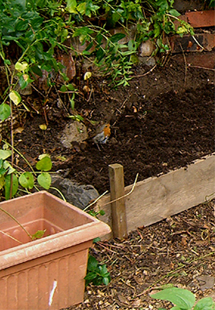 Whatever the ins and outs of declining butterfly populations, there’s nothing wrong with the birds by the plots. We have a new friendly robin.