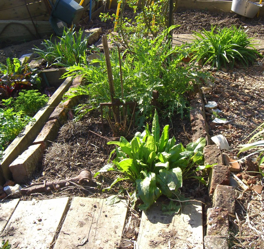 Spinach & Asian greens. Parsley and chard in the bed to the left. Garlic chive at the back. (25 March 2020)